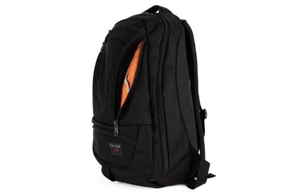 - Built-in Laptop compartment with two-way entry. Fits most 14-15" laptops and is suspended off the padded bottom so your tech is protected and easy to reach.